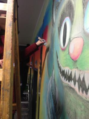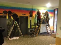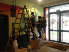 In meinem Projekt an der DAA München ging es darum den Eingangsbereich mit und für Jugendliche zu gestalten. Im Ergebnis bedeutet das oft, dass man späterem Vandalismus damit vorbeugen kann. Denn, warum etwas sauber halten, dass schon dreckig ist?